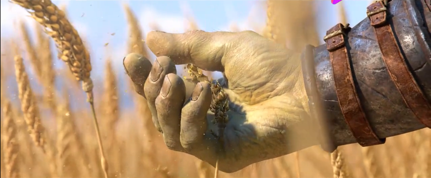 收獲時(shí)節(jié)的麥田深處,是一片祥和景象,隨著一雙大手一攆,麥穗隨風(fēng)飄灑,灰飛煙滅,薩魯法爾大王來(lái)了……