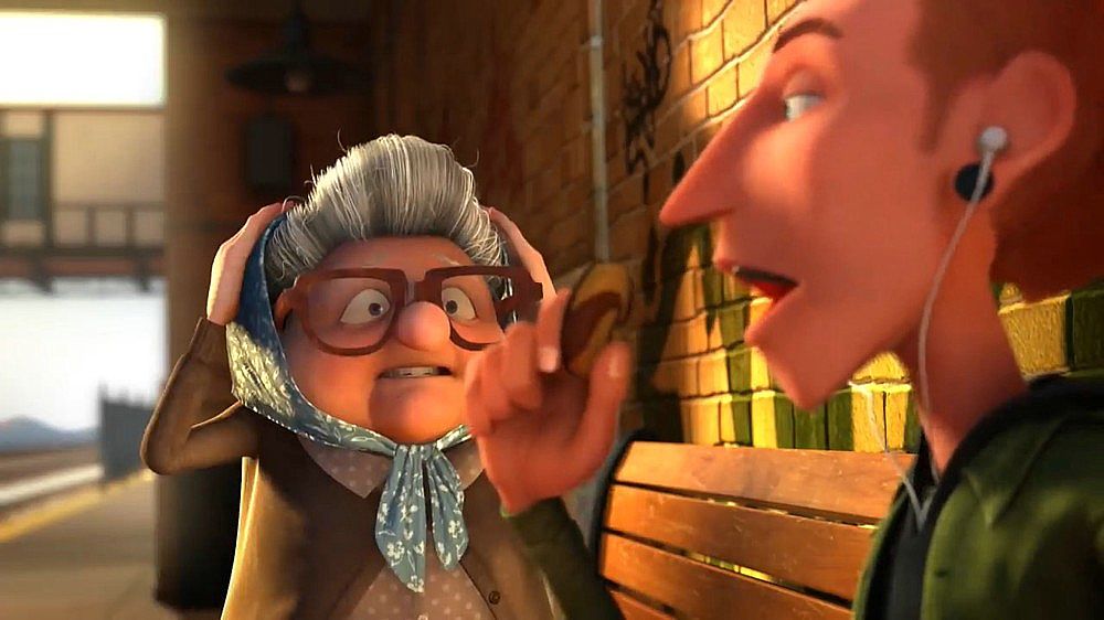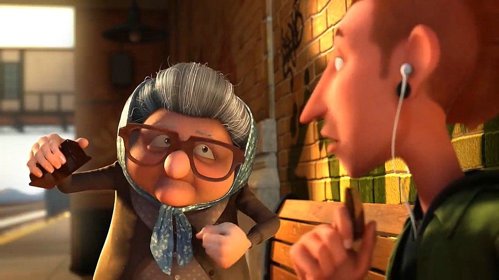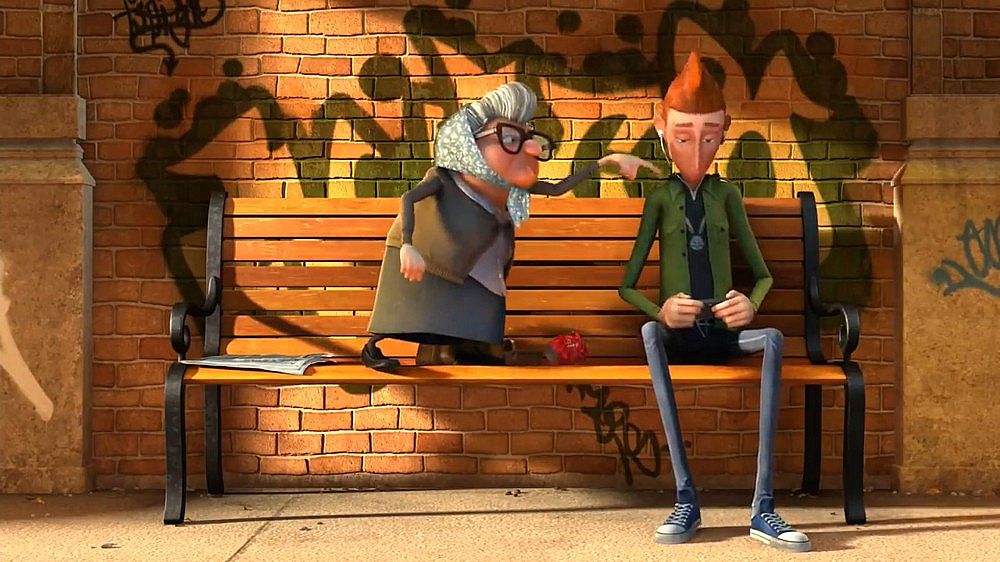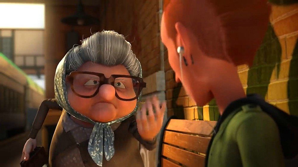 這部三維動畫片在短短4分鐘內(nèi)講了一個不太新鮮的故事,但是卻有自己對一些問題的獨特思考,傲慢和偏見經(jīng)常伴隨我們普通人左右,是固定僵化的思維方式,是高人一等的洋洋自得,從視頻中老太太指責(zé)年輕人那幾個手勢(電子游戲,沒有禮貌之類的)的畫面可以很明白的看出那些關(guān)鍵詞,其實都是我們對超出自己認(rèn)知以及和自己不同的事物所產(chǎn)生的恐懼,這恐懼可能會以傲慢不屑一顧的方式表達(dá)出來,比如你剛從父輩眼中堅強(qiáng)的垮過來,下代人立馬成了你口中即將垮掉的那一批……