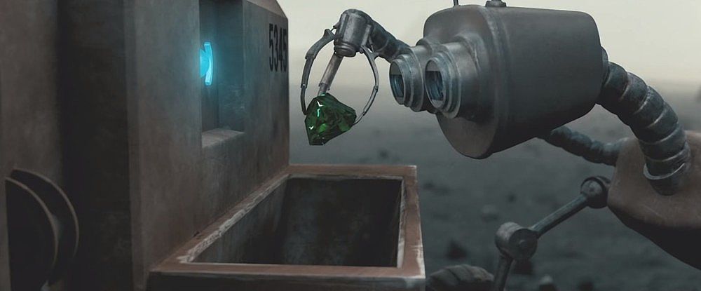 不過,3D短片里倆機器人的矛盾有一個非常簡單的解決方案啊:放在那,等下一堆礦石挖出來了夠偶數(shù)了再分不行么,犯得著你死我活的搶來搶去?