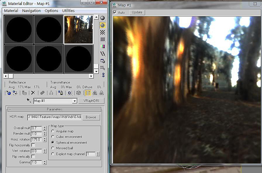 當(dāng)然用Instance方式復(fù)制到材質(zhì)編輯器里進行些調(diào)整還是有必要。Map Type是調(diào)整貼圖環(huán)境方式,球形,方形等等,利用Overall Mult調(diào)整強度的方法如下圖。