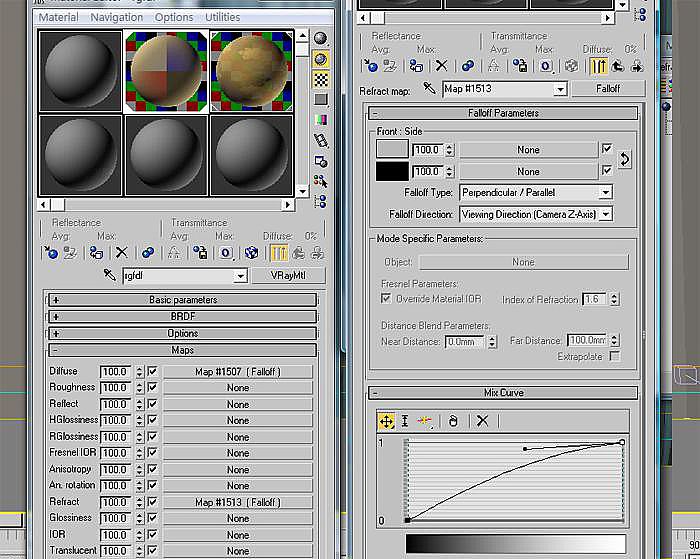 我們可以看到,這樣的調(diào)節(jié)方式,僅僅是在折射度的這個參數(shù)上,放上了一個FALLOFF貼圖來限定其透明程度即可。要注意的是折射率為1.01,這樣可以把透明物體的折射產(chǎn)生的扭曲降低到最小。