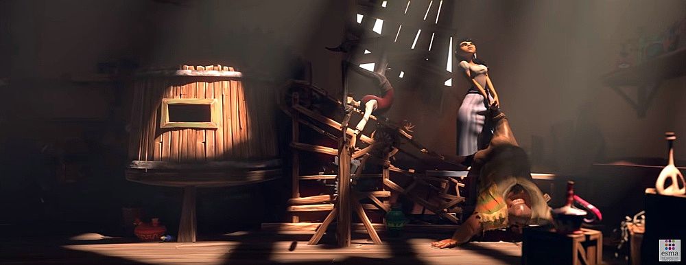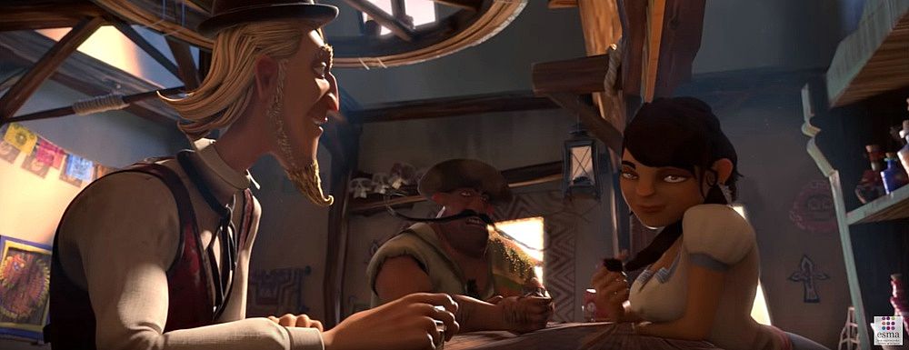 這部三維動畫短片,前面?zhèn)z逗逼牛仔爭風吃醋老半天,美女老板娘就那么邪魅的看著他們一直倒酒的時候,就感覺不太對頭。 果然后面?zhèn)z人一喝蒙蔽,直接被拖走丟進釀酒機了。。這墨西哥孫二娘還真挺牛逼… 所以說,有美女莫名給你獻殷勤時候得小心,十有八九得是個陷阱,另外,倆人花里胡哨又是扎手又是玩牌的秀技術,妄圖討的姑娘歡心,實在是太弱雞了,整袋的金幣不能嘩嘩亮出來,還泡什么妞啊,自己啥屌絲樣心里沒點數(shù)么?