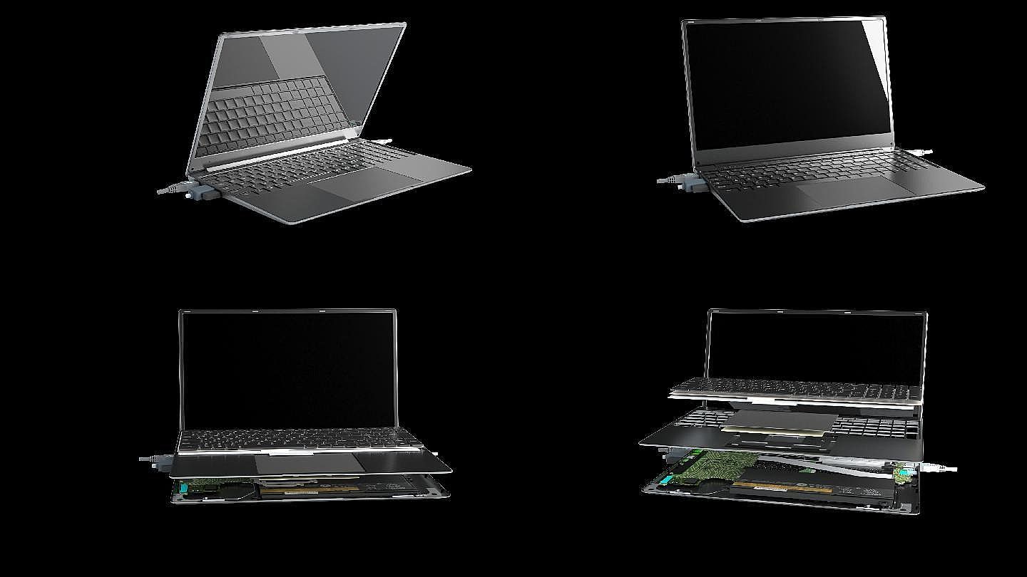 筆記本電腦零件結(jié)構(gòu)分解展示三維動畫鏡頭片段