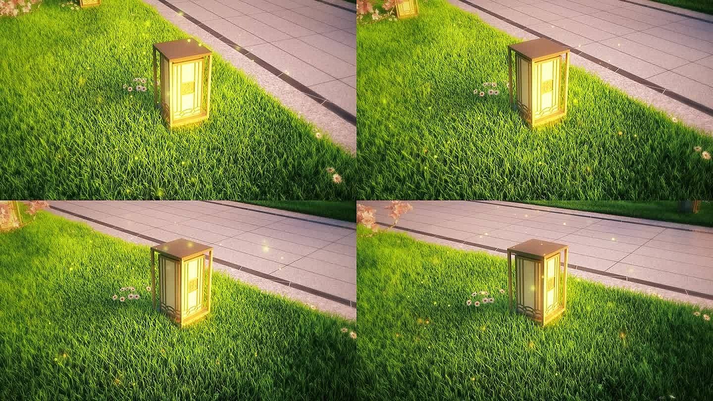 草地小燈園林小品微景觀近景特寫三維動畫鏡頭
