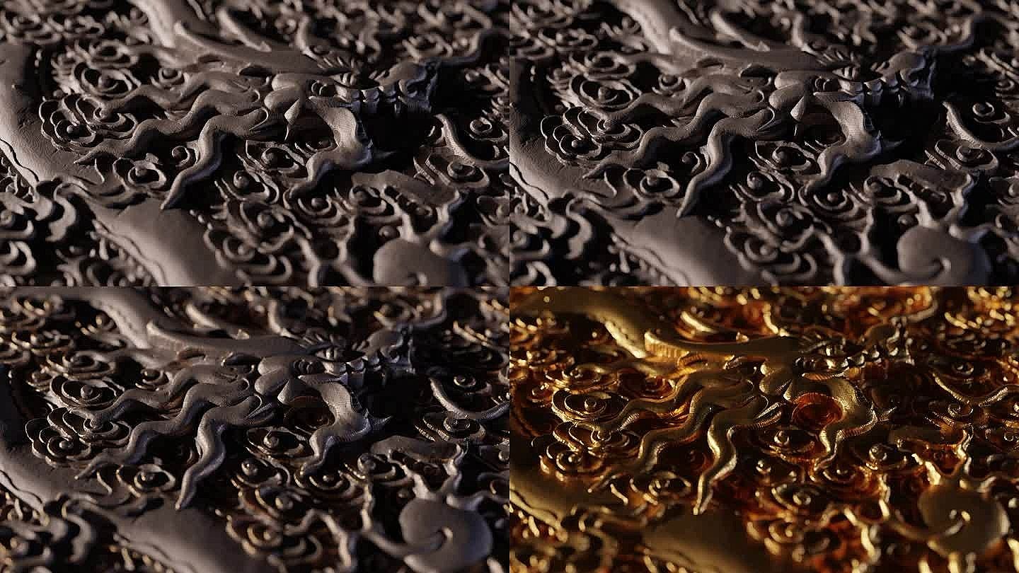 三維龍紋立體浮雕變鎏金色特寫動畫鏡頭