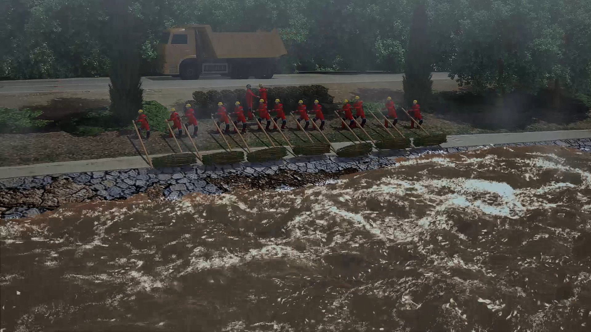 白馬溝險(xiǎn)工段沖刷破壞搶險(xiǎn)演練3D動(dòng)畫(huà)視頻