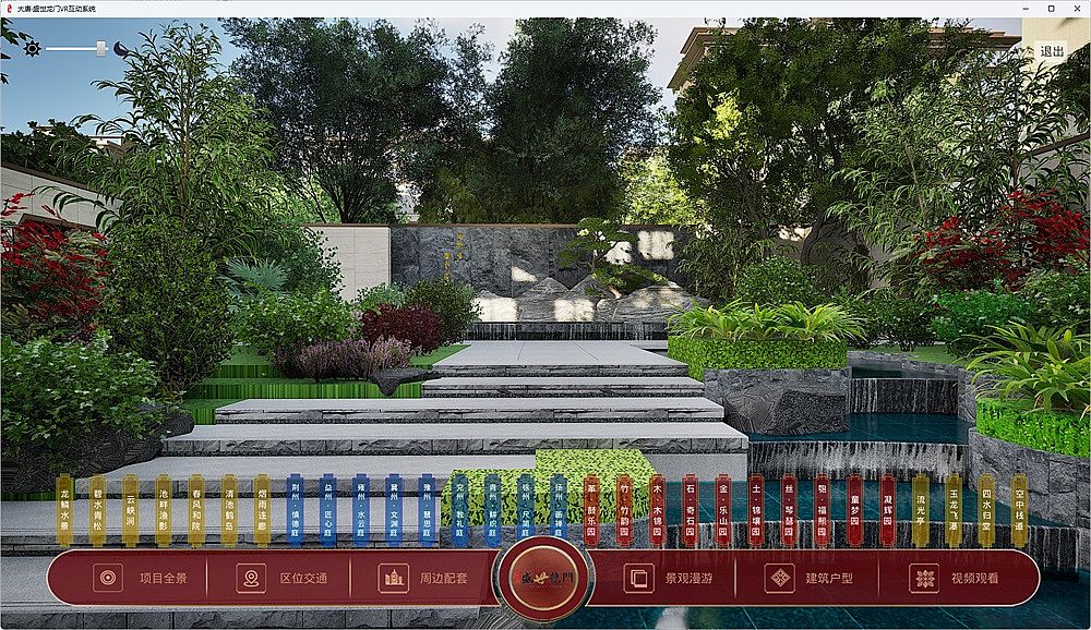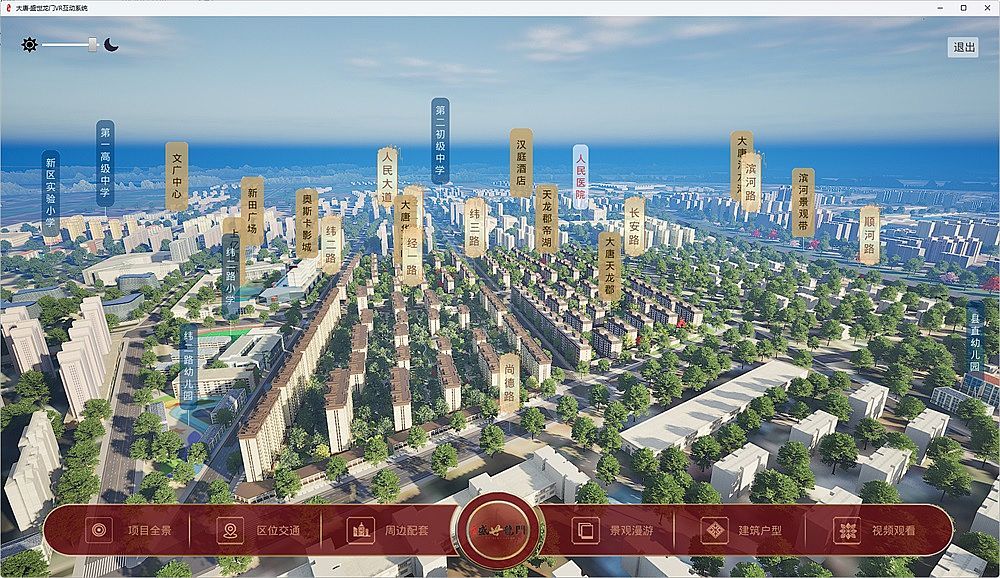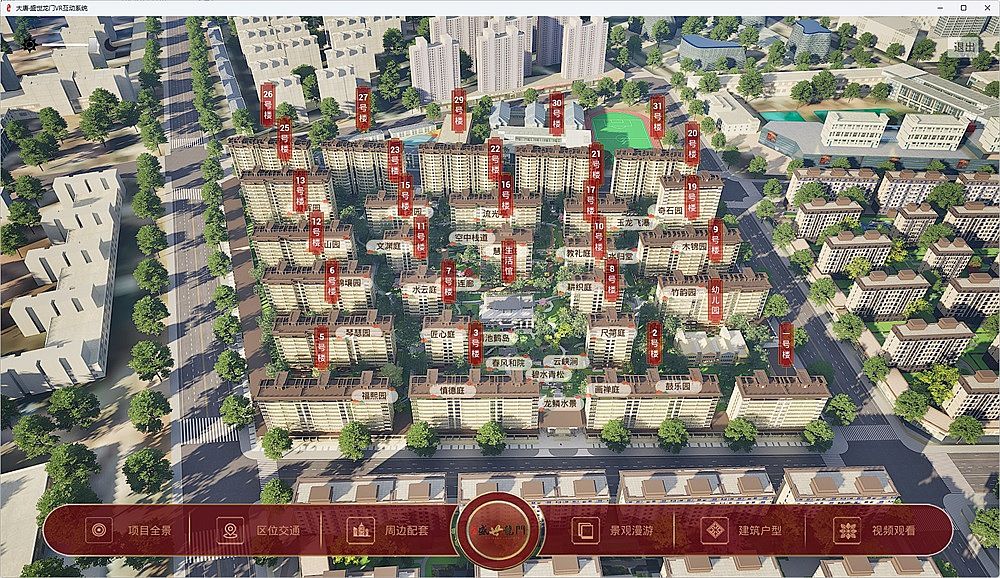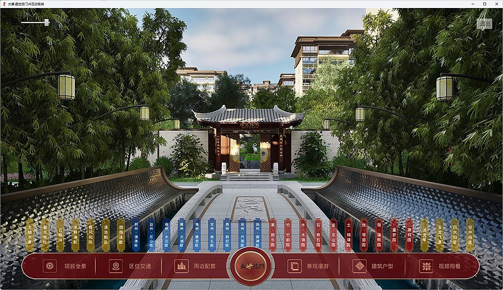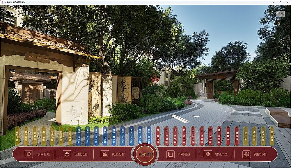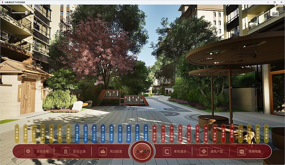 盛世龍門(mén)地產(chǎn)VR互動(dòng)展示系統(tǒng),使用UE引擎,全方位呈現(xiàn)整個(gè)小區(qū)的各個(gè)景觀節(jié)點(diǎn),全景交互,可自由行走游覽。